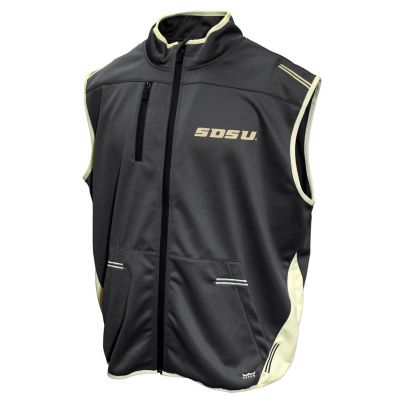 Softshell vest with 4-way stretch water-resistant shell. Custom water-resistant color zippers on front and on pockets. Colored elastic band hem and cuffs. Embroidery/applique artwork for long-lasting style. | Franchise Club Men's Ncaa South Dakota State Jackrabbits Endurance Vest, 3X